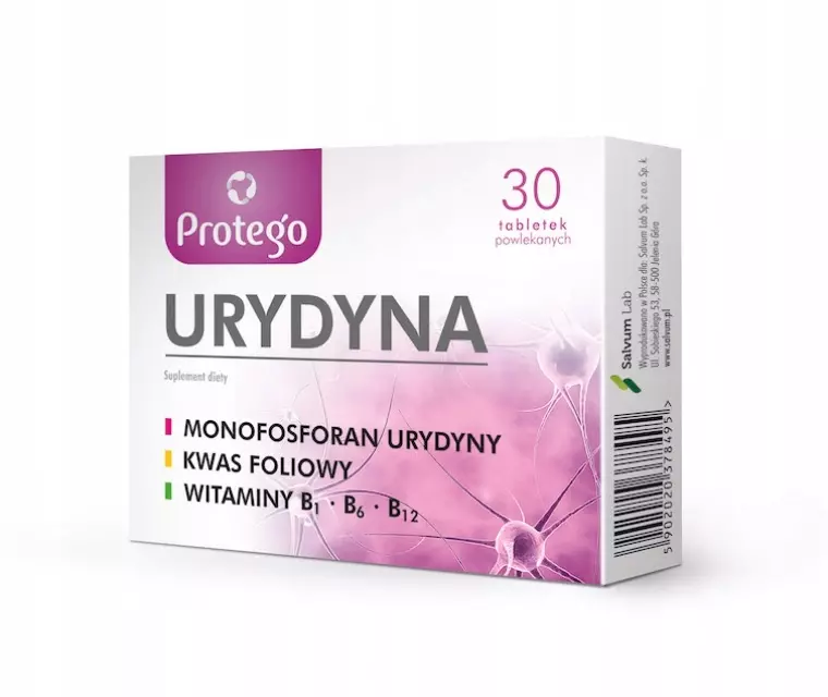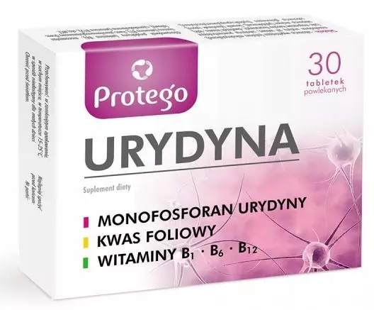Suplement diety. PROTEGO Urydyna to preparat uzupełniający codzienną dietę w monofosforan urydyny oraz witaminy z grupy B (B1, B6, B12) i kwas foliowy.