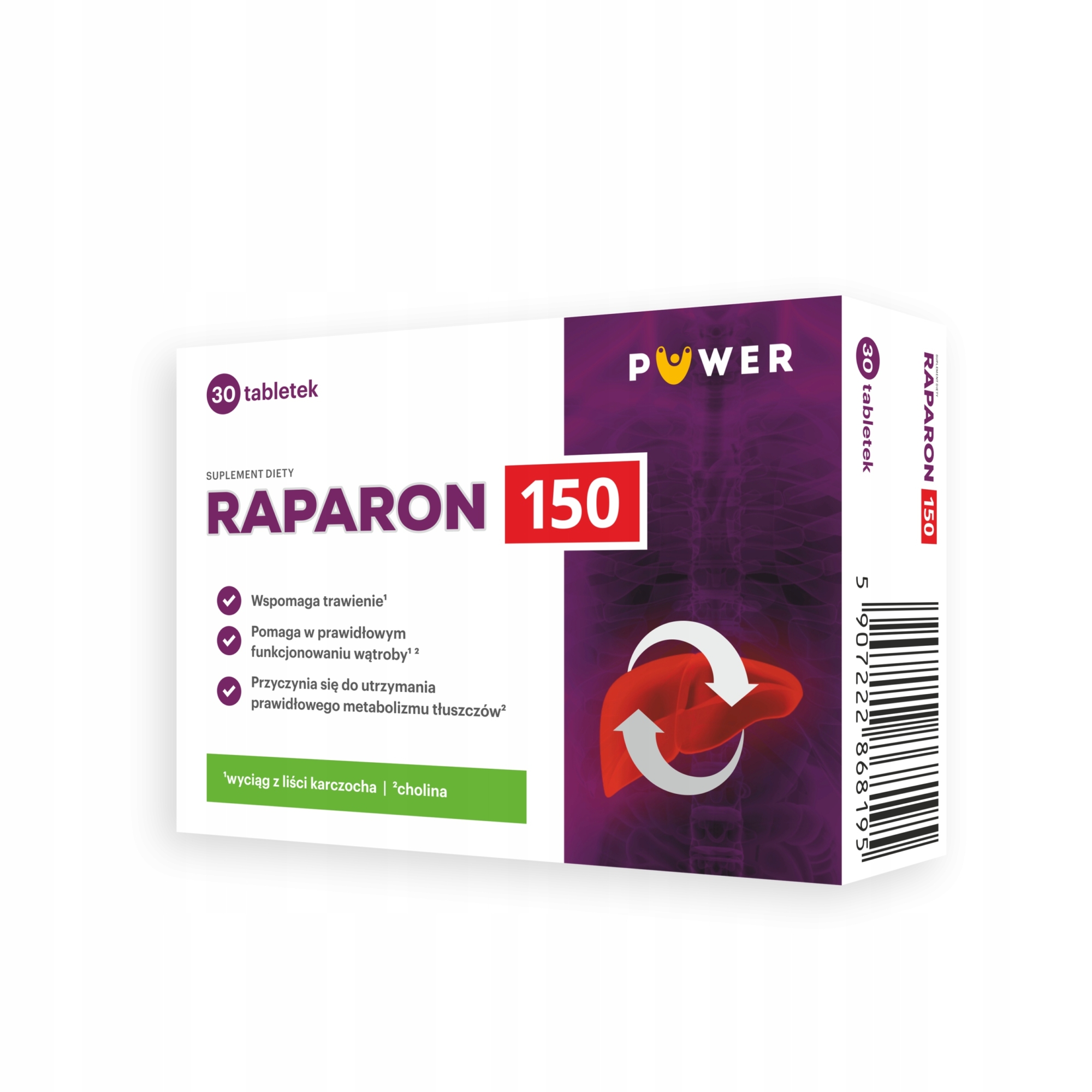 RAPARON 150 to prawdziwy przyjaciel każdej watroby oraz wsparcie trawienia. Suplement zawiera wyciągi roślinne z korzenia czarnej rzodkwi i z liści karczocha (standaryzowany na zawartość cynaryny), który pomaga utrzymać zdrowie wątroby oraz wspomaga trawienie. Cholina zawarta w preparacie pomaga w prawidłowym funkcjonowaniu wątroby i utrzymaniu prawidłowego metabolizmu tłuszczów. Raparon uzupełnia dietę w L-asparginian L-ornityny.