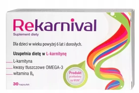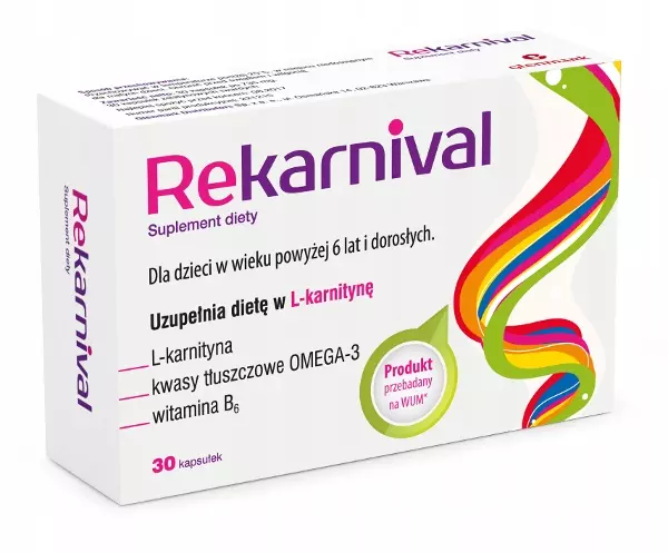 Rekarnival to suplement diety przeznaczony do stosowania w celu uzupełnienia L-karnityny, kwasów omega-3, witaminy B6 i magnezu. Polecany dla osób aktywnych fizycznie, przeciążonych pracą umysłową i dzieci powyżej 6 roku życia.