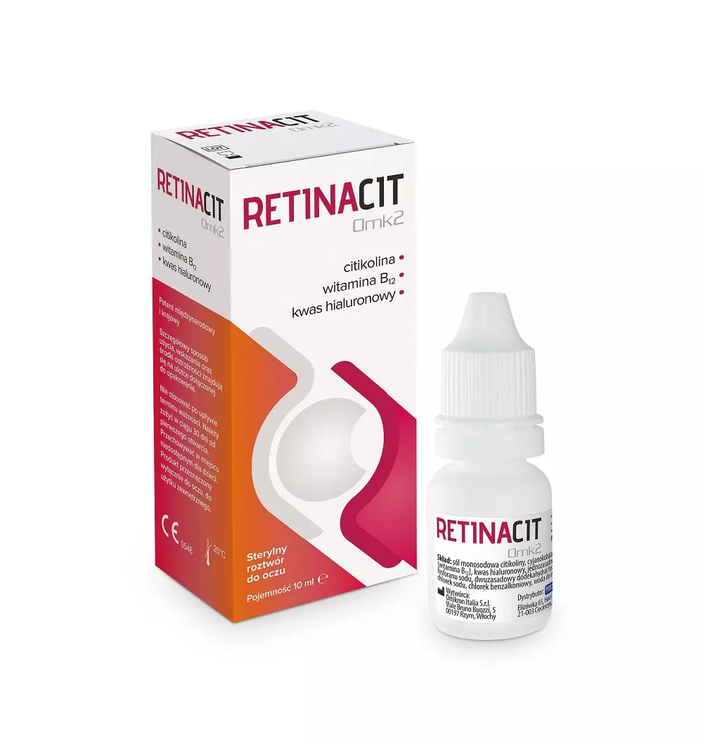 RetinaCit Omk2 to sterylny roztwór do oczu wskazany dla pacjentów w początkowym stadium retinopatii cukrzycowej. Nawilżające i ochronne właściwości preparatu zapewniają również ulgę w przypadku podrażnień, uczucia pieczenia i wrażenia obecności ciała obcego w oku wywołanych czynnikami środowiskowymi lub długotrwałym korzystaniem z komputera.
