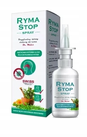 RymaSTOP Dr. Weiss to spray ziołowy do nosa, produkowany według oryginalnej szwajcarskiej receptury. Zawiera unikalną kombinację 10 standaryzowanych ekstraktów ziołowych - HERBALMEDICTM: