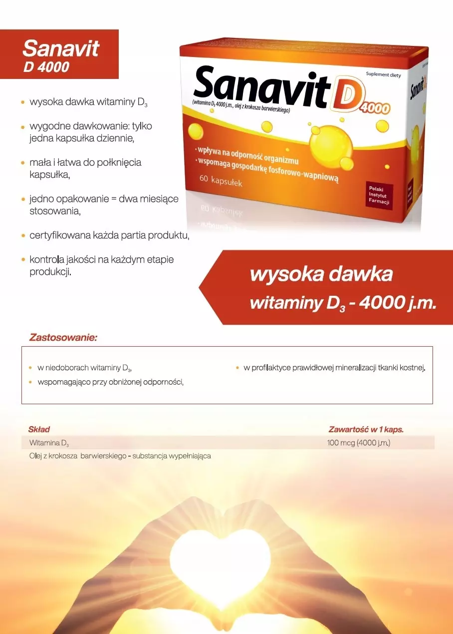 Sanavit D 4000 Witamina D3 Kości Odporność 60 Kapsułek