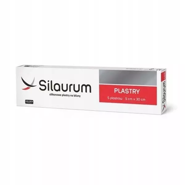Silikonowe plastry na blizny Silaurum 5 x 30 cm to wyrób medyczny przeznaczony do stosowania na blizny różnego rodzaju i wielkości. Nadają się do stosowania zarówno na blizny świeże jak i na te już istniejące. Działają wspomagająco na leczenie blizn różnego pochodzenia: pooperacyjnych, pourazowych, pooparzeniwych itp; wygładzają i rozjaśniają je zmniejszając ich widoczność. Wspomagają też prawidłowe bliznowacenie zmian skórnych.