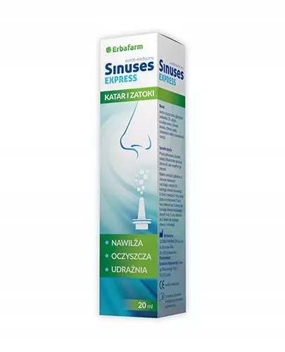 Sinuses Express to płyn w postaci sprayu do nosa. Tworzy na powierzchni błony śluzowej nosa film ochronny, który zabezpiecza ją przed szkodliwym działaniem czynników zewnętrznych. Preparat wspomaga regenerację błony śluzowej nosa.