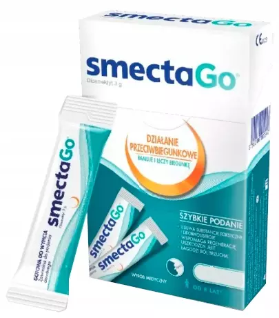 IPSEN - SmectaGo, zawiesina doustna jest wyrobem medycznym ułatwiającym eliminację substancji toksycznych z organizmu oraz osłaniającym i wspierającym regenerację przewodu pokarmowego.