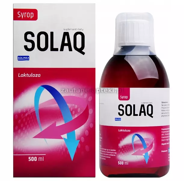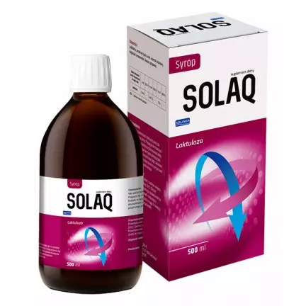 Solaq jest preparatem stosowanym w zaparciach. Głównym składnikiem preparatu jest laktuloza, dwucukier składający się z galaktozy połączonej z fruktozą, o działaniu łagodnie przeczyszczającym. Laktuloza zawarta w preparacie, na drodze osmotycznej, zwiększa ilość wody w jelicie grubym, przyspiesza pasaż jelitowy oraz zmiękcza masy kałowe, ułatwiając wypróżnienia.