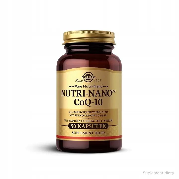 Solgar Nutri-Nano CoQ-10 dla osób, które chcą uzupełnić swoją codzienną dietę w koenzym Q-10 o wysokiej biodostępności. Koenzym Q-10 (ubichinon) jest niezbędny do produkcji energii w każdej komórce organizmu. Dlatego też narządy, które mają wysokie zapotrzebowanie na energię do funkcjonowania (takie jak serce, wątroba czy mięśnie szkieletowe) mają tendencję do wysokiego stężenia CoQ-10, aby zaspokoić swoje zapotrzebowanie energetyczne. Ten witaminopodobny związek, jest naturalnie wytwarzany przez organizm i jest obecny w niektórych produktach spożywczych, w tym w mięsie.