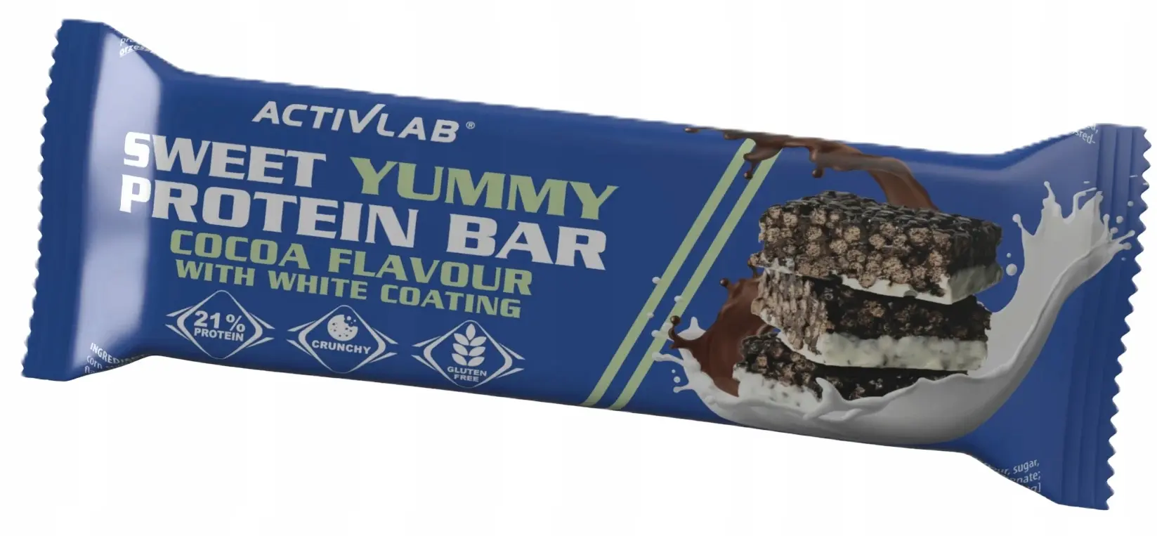 Sweet Yummy Protein Bar to chrupiący baton proteinowy o intensywnym smaku kakao, pokryty od spodu delikatną, białą polewą i wzbogacony o kawałki ciastek. Zawiera 21% białka, jest bezglutenowy i idealnie sprawdzi się jako wartościowa przekąska w ciągu dnia lub po treningu. To świadomy wybór dla tych, którzy szukają czegoś więcej niż zwykły baton.