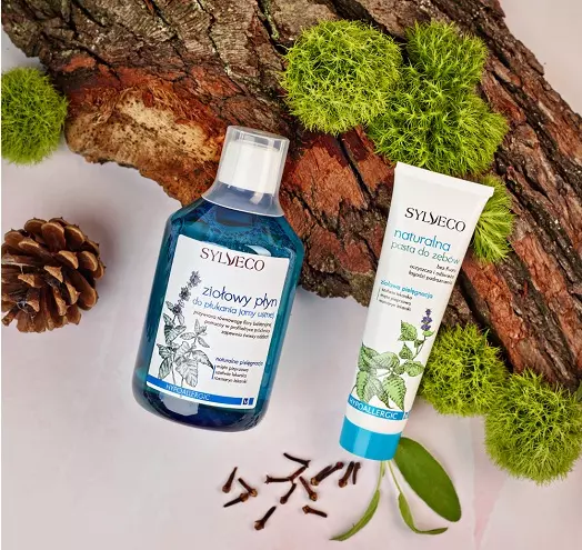 - W składzie pasty znajdziemy ekstrakty ziołowe (szałwia, mięta, rozmaryn, goździki), oraz ksylitol, który zapobiega próchnicy i łagodzącą alantoinę.
