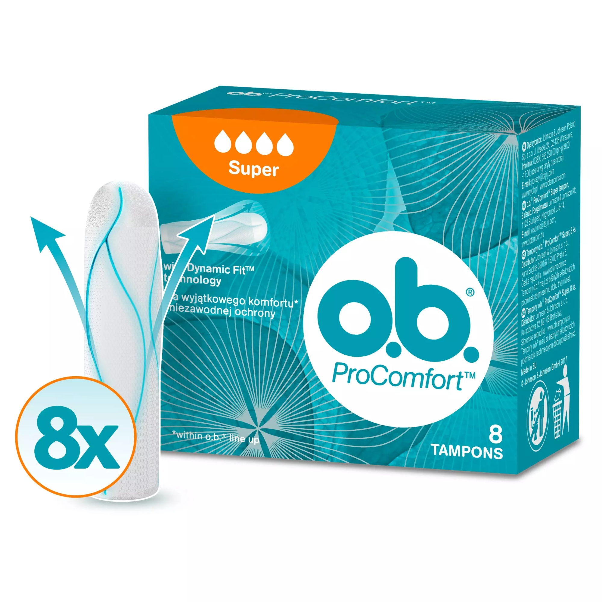 Tampony o.b.® ProComfort™ zapewniają łatwą aplikację dzięki otoczce SilkTouch™ oraz niezawodną ochronę dzięki rewolucyjnej technologii DynamicFit™ z 3D expansion, dzięki której tampon o.b.® dostosowuje się do twojego ciała i efektywnie wychwytuje płyn, kierujac go poprzez splecione rowki do wnetrza i w górę tamponu.
