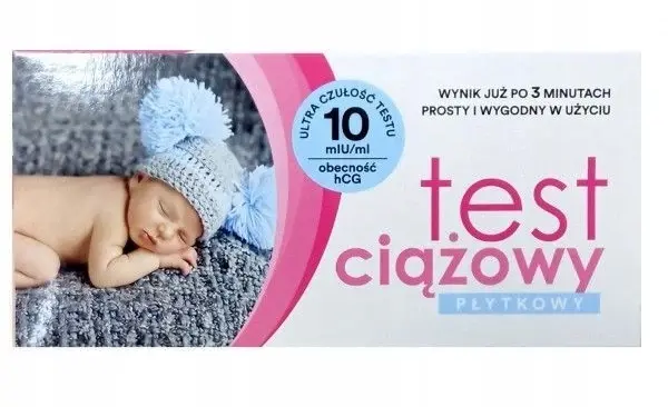 Test ciążowy płytkowy o czułości 10 mlU/ml. Wyrób do samokontroli.