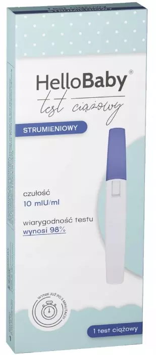 HelloBaby test ciążowy strumieniowy. Czułość 10 mIU/ml. Wiarygodność 98%.!!