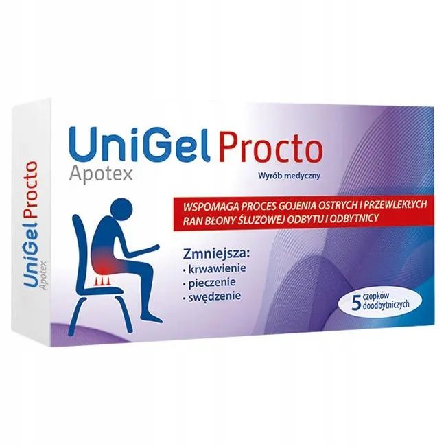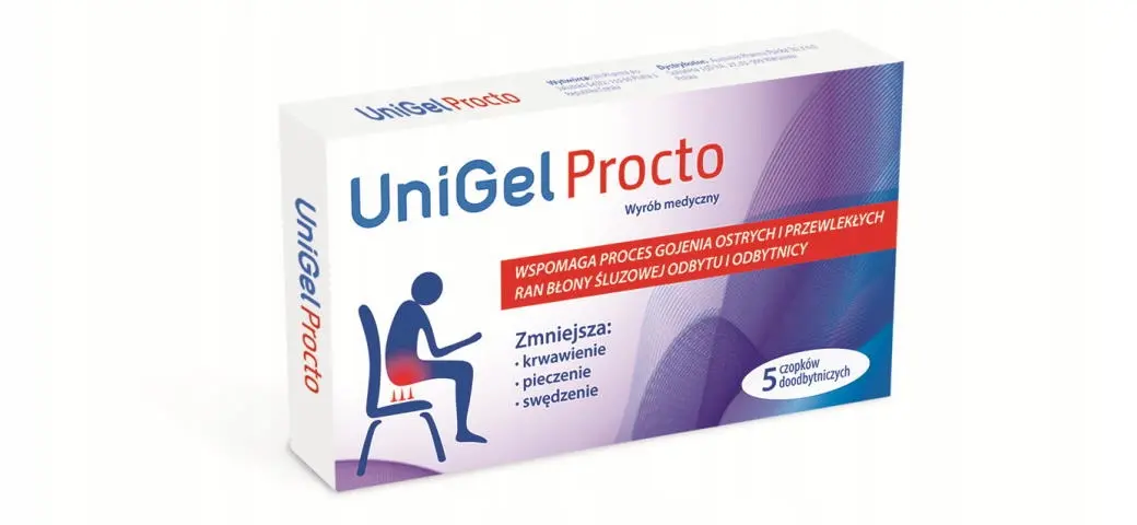 Wyrób medyczny UniGel Procto wspomaga proces gojenia w przypadku ostrych i przewlekłych ran błony śluzowej odbytu i odbytnicy (szczelin odbytu, hemoroidów) oraz u pacjentów po przebytym zabiegu leczenia hemoroidów metodą Barrona (Ligatura Barrona).
