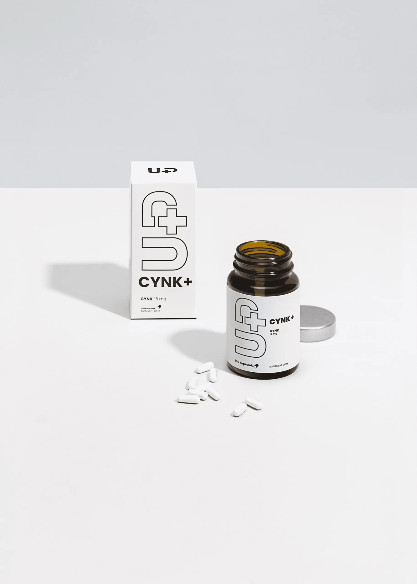 UP CYNK+ Up health to suplement diety zawierający jedną z najlepiej przyswajalnych form cynku (chelat aminokwasowy cynku). która pomoże Ci wesprzeć płodność i zadbać o zdrowy wygląd.|