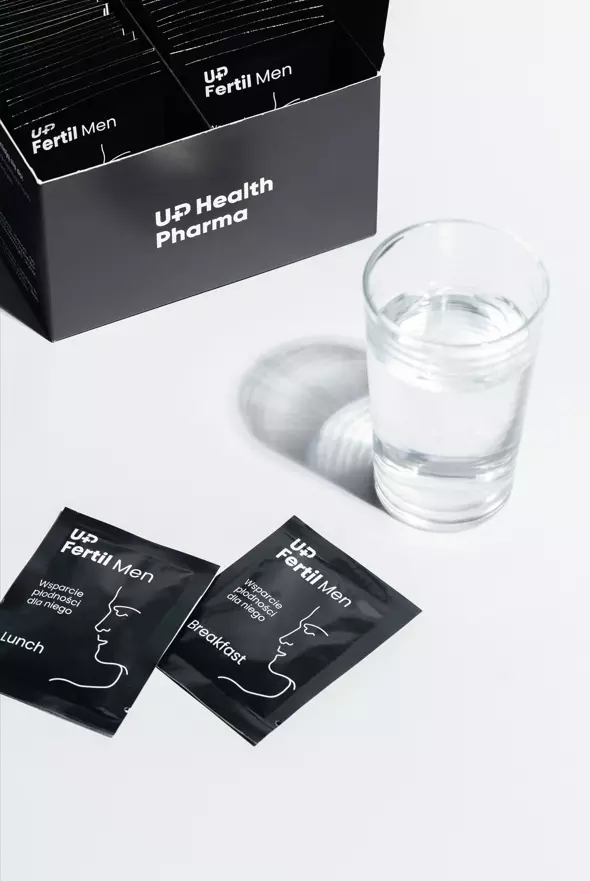 Zalecane spożycie: 1 porcja dziennie (2 kapsułki) UP Fertil Men+ Breakfast spożyć w całości do śniadania i popić wodą. 1 saszetka UP Fertil Men+ Lunch rozpuszczona w szklance letniej wody (250 ml) - wypita do obiadu.