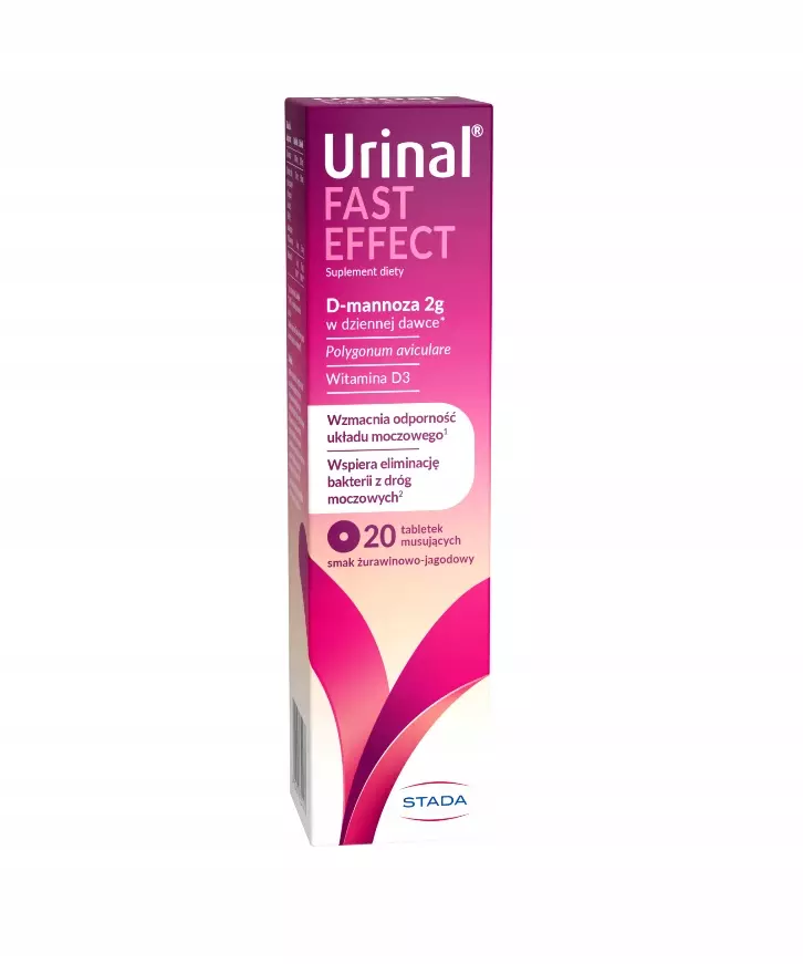 Urinal Fast Effect to unikalne, synergistyczne działanie 3 aktywnych dla układu moczowego składników: D-mannoza w wysokiej dawce 2g w połączeniu ze standaryzowanym ekstraktem z ziela rdestu ptasiego (Polygonum aviculare) oraz witaminą D3. Przeznaczony dla osób dorosłych.