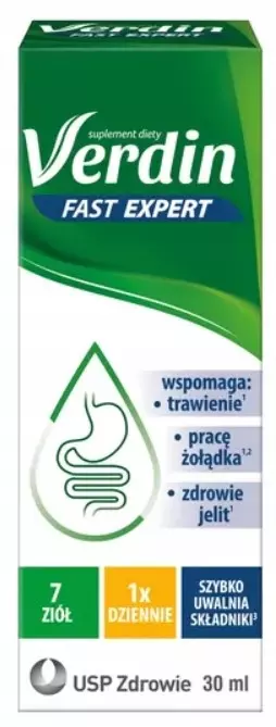 Krople Verdin Fast Expert to suplement diety, zawierający 7 ziół.