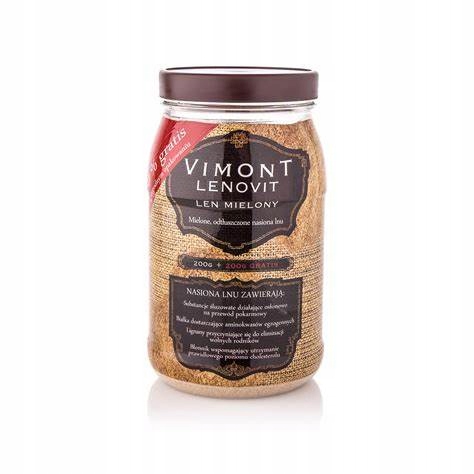 Vimont Lenovit – Len mielony - działa osłonowo na przewód pokarmowy, wspomaga utrzymanie prawidłowego poziomu cholesterolu, przyczynia się do usuwania wolnych rodników.