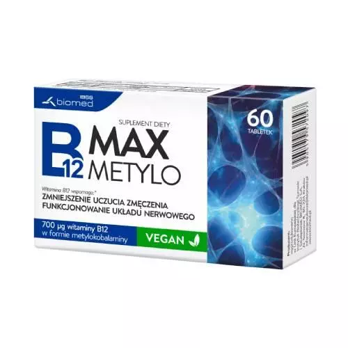 Suplement diety zawierający wysoką ilość witaminy B12. Produkt odpowiedni dla wegan.