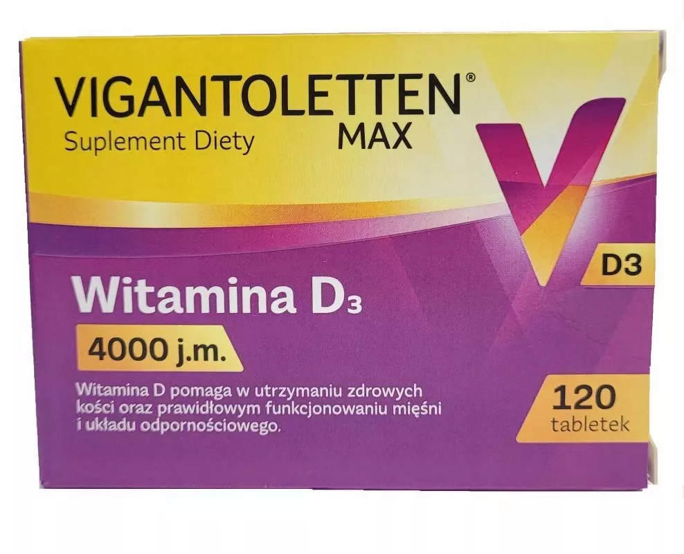 Vigantoletten Max - suplement diety zawierający witaminę D3 przeznaczony dla osób dorosłych.