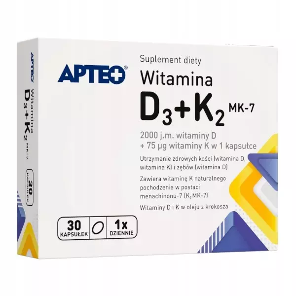 Witamina D3+K2 MK-7 Apteo Zdrowe Kości Zęby 30 Kapsułek