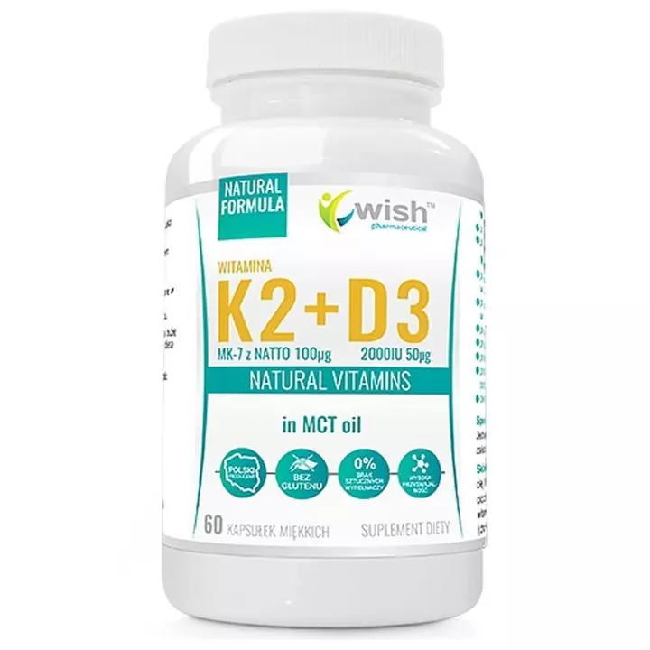 Witamina K2 100mcg+D3 50mcg 60 kapsułek od Wish – skoncentrowana dawka witaminy D3 i k2 w jednej kapsułce!