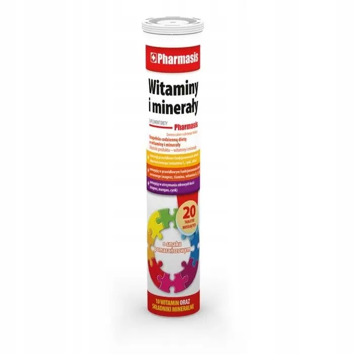 Witaminy i minerały Pharmasis to suplement diety w formie tabletek musujących o smaku pomarańczowym. To zestaw potrzebnych dla zachowania zdrowia witamin i minerałów w formie tabletek musujących, korzystnie wpływających na sprawność fizyczną i psychiczną.