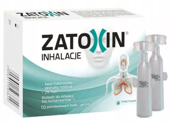 Zatoxin Inhalacje to roztwór do inhalacji do stosowania wziewnego, składający się z hipertonicznego roztworu opartego na ekstraktach ziołowych: melisy lekarskiej, pachnotki zwyczajnej i macierzanki piaskowej w połączeniu z kwasem hialuronowym.