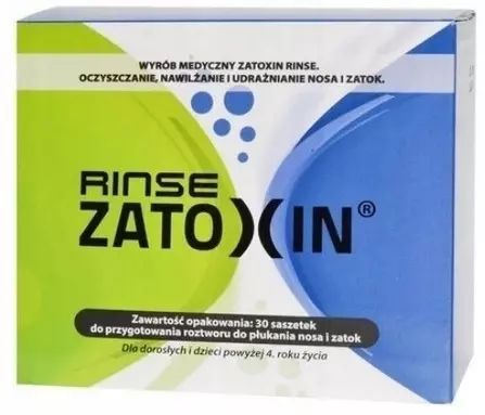 Zatoxin Rinse to roztwór chlorku sodu i dwuwęglanu sodu, który pozwala na dokładne oczyszczenie nosa i zatok z zalegającej wydzieliny, alergenów oraz patogenów, tym samym ograniczając gromadzenie się czynników, które mogą powodować infekcje. Dwuwęglan sodu zapewnia odpowiednie, lekko zasadowe pH roztworu. Składnik ten rozrzedza gęstą wydzielinę i sprzyja szybszemu usuwaniu zanieczyszczeń z jamy nosowej.
