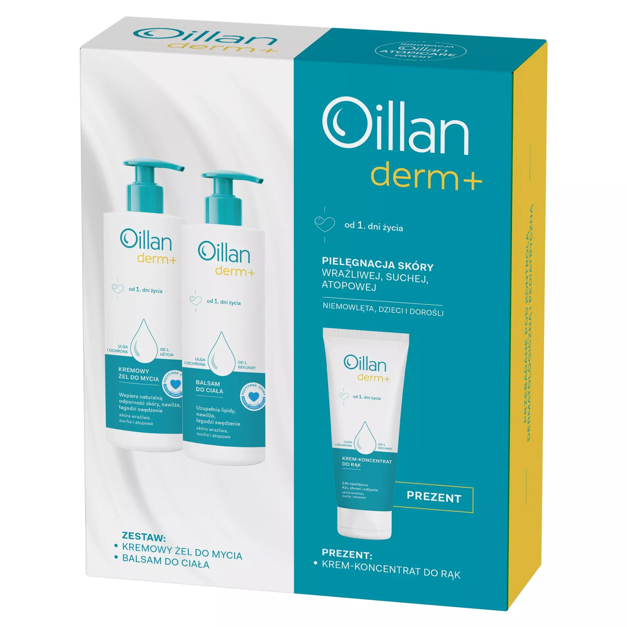 Zestaw Oillan Derm+ Kremowy żel do mycia, Balsam do ciała, Krem-koncentrat do rąk w prezencie