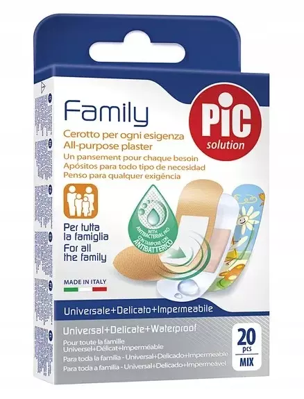 W zestawie plastrów Pic Family różnych rodzajów zawsze znajdzie się plaster odpowiedni do potrzeby. Różnorodność rodzajów plastrów sprawia, że asortyment znajdzie zastosowanie zarówno u osób dorosłych, jak i u dzieci.